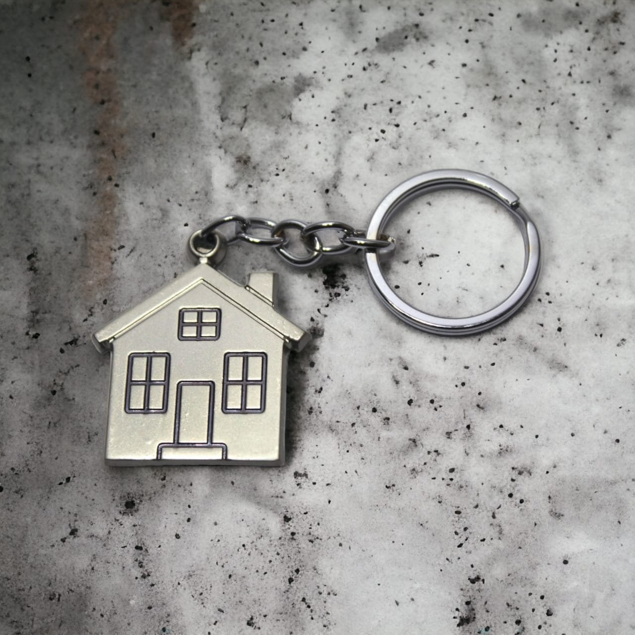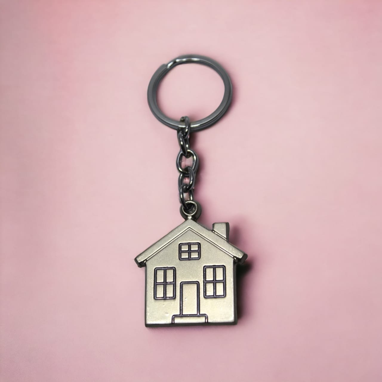 The home idol keychain comes in stainless steel metarial for long term sustainability as well as your home. windows and main gate brushed with black paint. Chimney of this home keychain raise of top of this keychain.